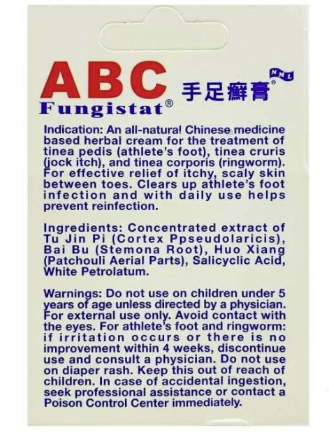 ABC手足癣 膏为强效之抗霉菌药。对足癣 (香港脚),手癣 , 股癣,体癣,均效果卓著。