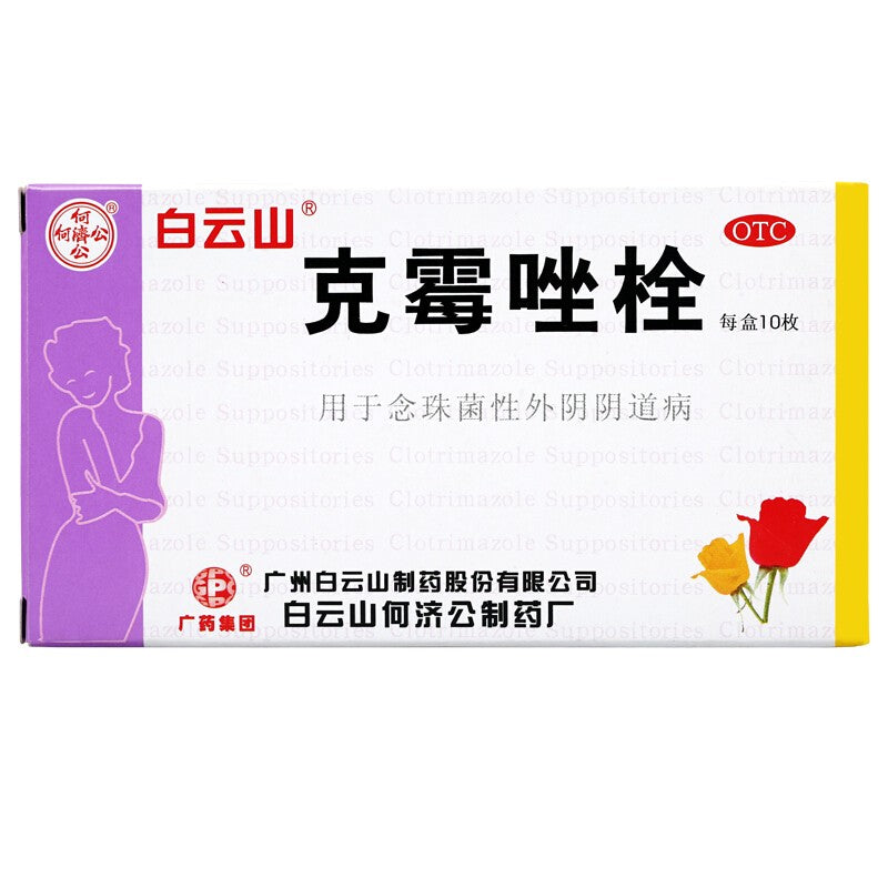 Bai Yun Shan Ke Mei Zuo Shuang 白云山克霉唑栓 10Pieces