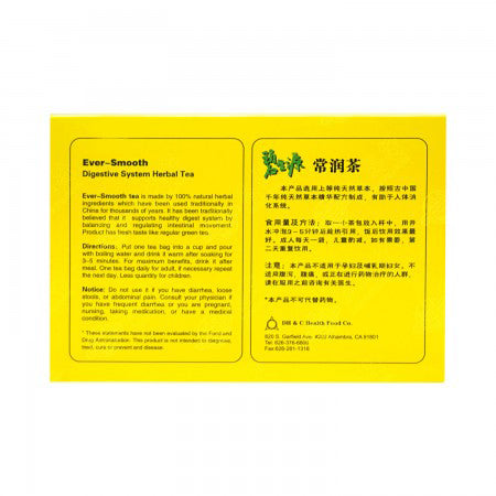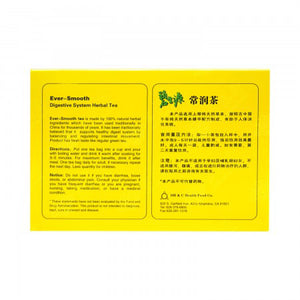 Ever-Smooth tea is made by 100% natural herbal ingredients which have been used traditionally in China for thousands of years. It has been traditionally believed that it supports a healthy digestive system by balancing and regulating intestinal movement. The product has a fresh taste like regular green tea.