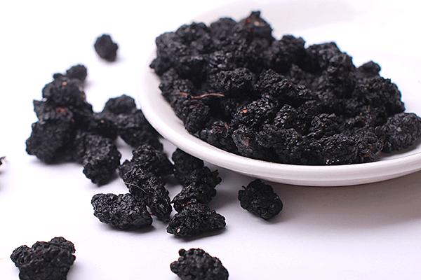 桑椹为桑科植物桑的果穗。桑椹有黑桑椹和白桑椹之分,因黑桑椹色黑主入肾经,故药用多为黑桑椹。近年的研究也表明,桑椹具有调节促进免疫功能,延长果蝇寿命,抗诱变等作用且无毒性。并且黑桑椹较白桑椹作用更为显著。桑椹现已被卫生部列为“既是食品又是药品”的农产品之一,具有很高的食用和药用价值,是开发功能性食品的优质原料。