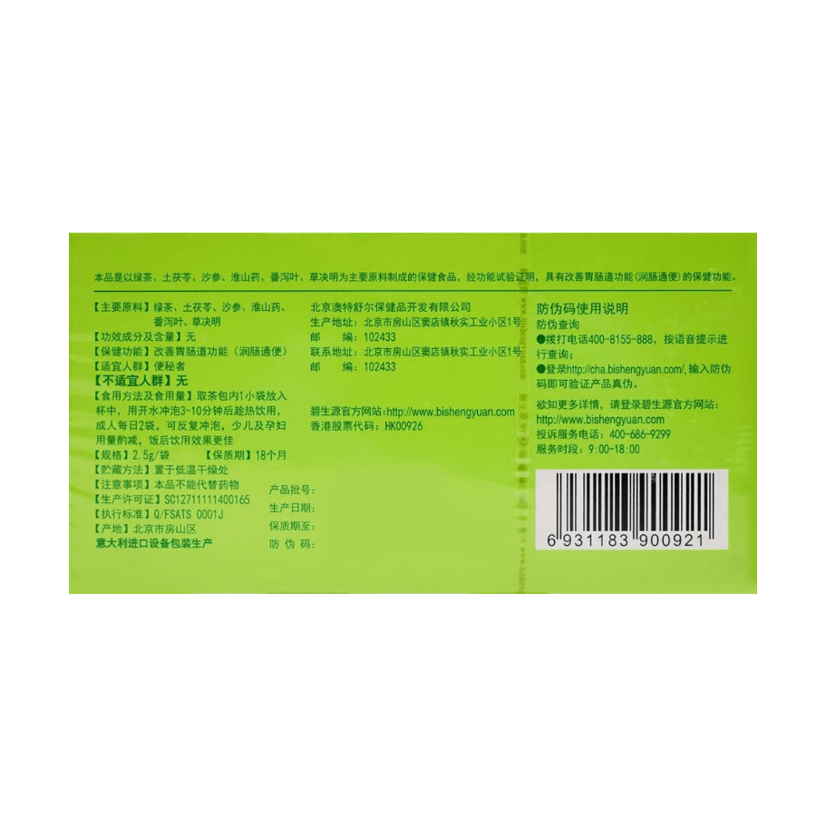 Chang Run Cha 碧生源常润茶 25bags