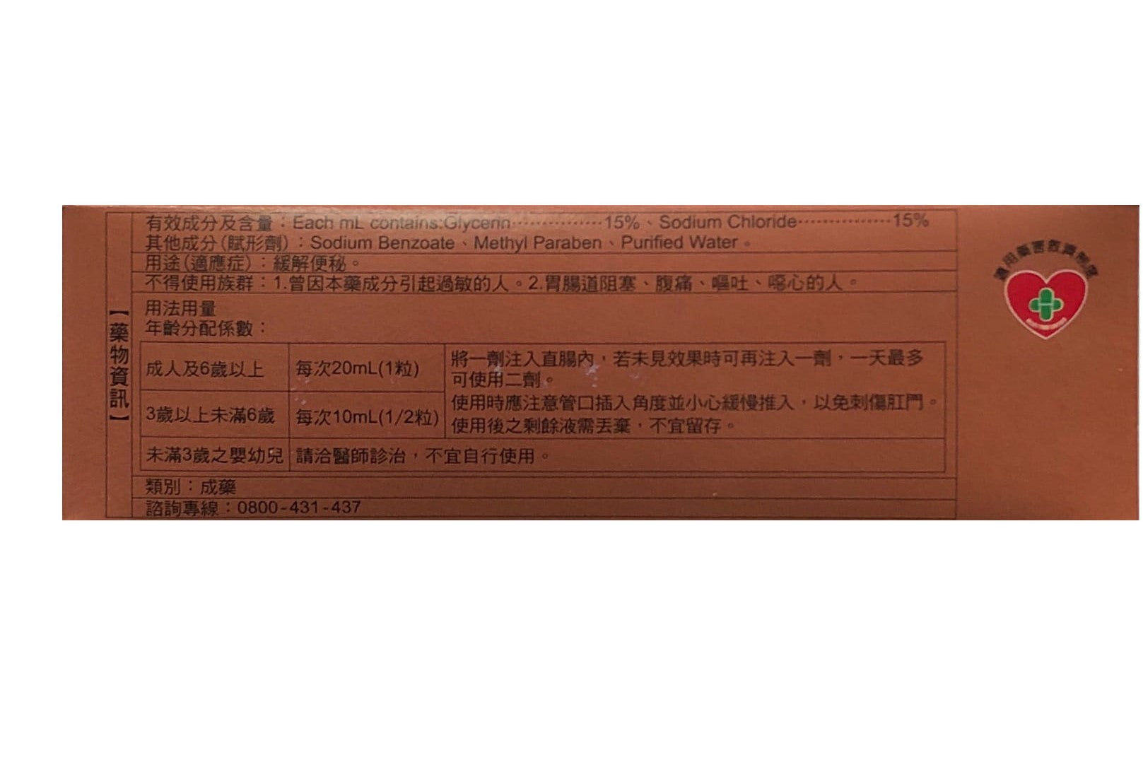 Clyster Jensheng (Ren Sheng Huan Chang Kai Sai Lu)太阳牌人生浣肠开塞露(外用)
