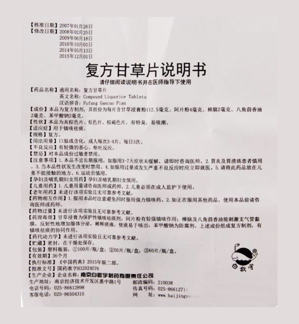 Fu Fang Gan Cao Pian 复方甘草片 100pills