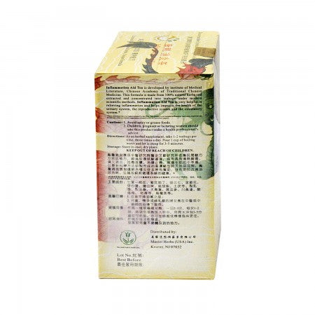 Inflammation Aid Tea is developed by the Institute of Medical Literature, Chinese Academy of Traditional Chinese Medicine. This formula is made from 100% natural herbs and extracted and concentrated into teabags under modern scientific methods. Inflammation Aid Tea is very helpful in relieving inflammation and helps improve the health of the urinary system, the reproductive system, and the circulatory system.