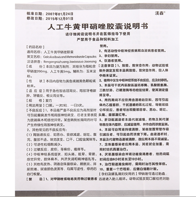 Jia Xiao Cuo 人工牛黄 甲硝唑