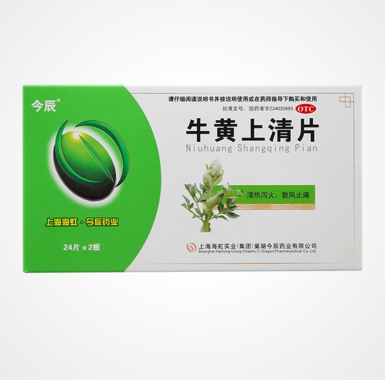 Jin Chen Huang Lian Shang Qing Pian 今辰牛黄上清片 24pill x 2strip