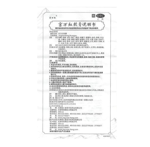 Jing Wan Hong Ruan Gao 京万红软膏 20g