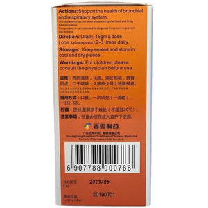 Juhong Ligao Bronchial Support is used to relieve cough, phlegm, and heat accumulation from a common cold, bronchitis, pharyngitis, and asthma.