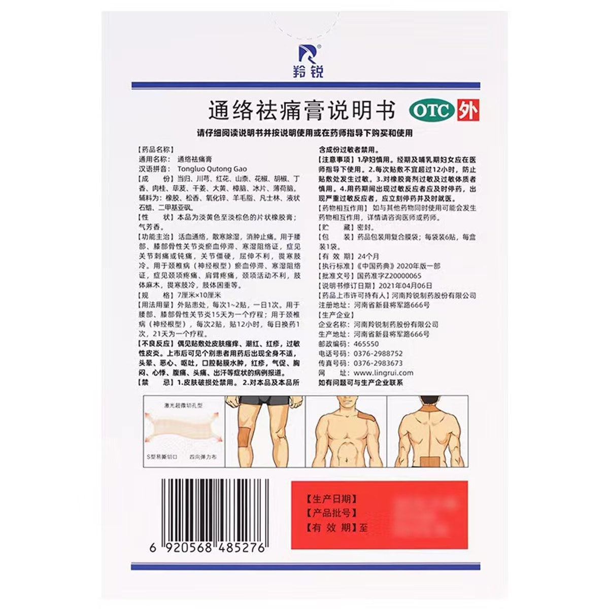 Lin Yue Wai Tong Luo Qu Tong Gao 羚锐通络祛痛膏 6pats*1box
