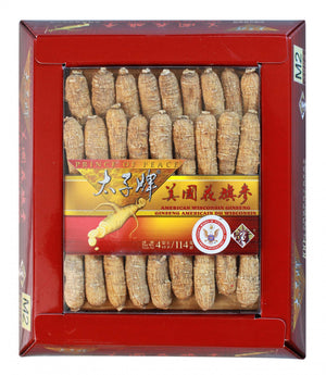 花旗參又名西洋參,原產美國威斯康辛州,是上等純正的花旗參。美國太子行所出品的花旗參,全經嚴格篩選及專人修剪參根,去除參須及橫枝,保留最有價值的參根部分,再依大小長短分級包裝,保證是貨真價實的純正頂級威州花旗參。保持全美銷量冠軍逾廿載的太子牌花旗參,絕對是送禮自用,回鄉探親的佳品。