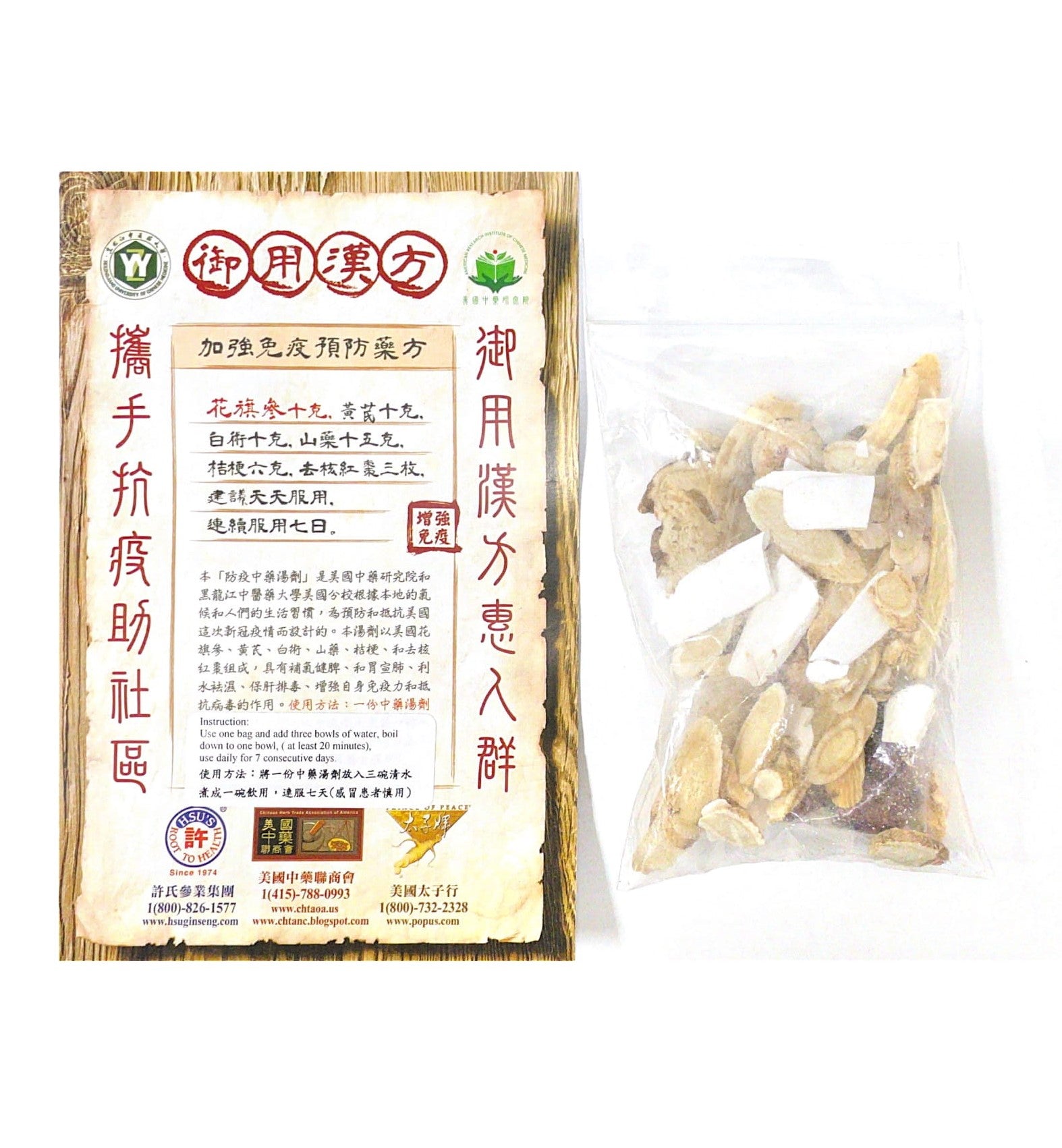 使用方法:将一份中药汤剂放入三碗清水煮成一碗饮用,连服7天。(感冒者慎用)