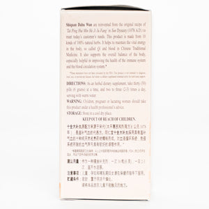 Shi Quan Da Bu Wan helps to maintain the vital energy in the body, so call Qi and blood in Chinese Traditional Medicine. It also supports the overall balance of the body, especially helpful in improving the health of the immune system and warming and nourishing qi and blood. Use for deficiency of qi and blood, pale complexion, difficult breathing, palpitation, dizziness, loss of appetite, debility of feet and knee, metrorrhagia and metrostaxis of women and so on.