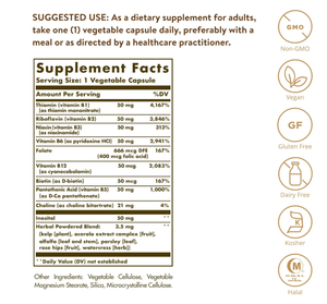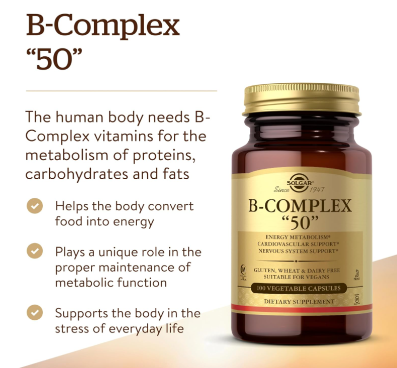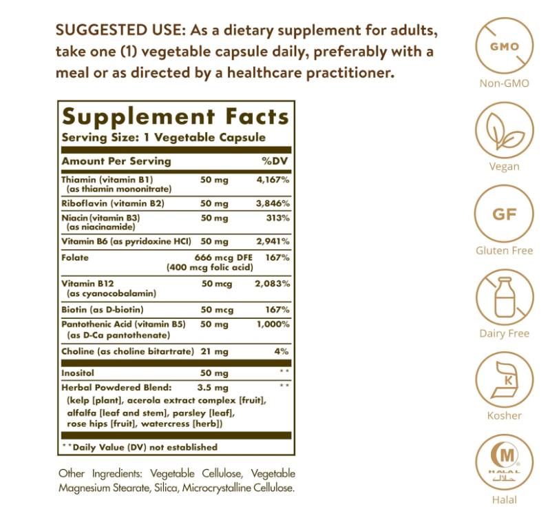Solgar B-Complex “50” 100 vegetable capsules B族复合维生素