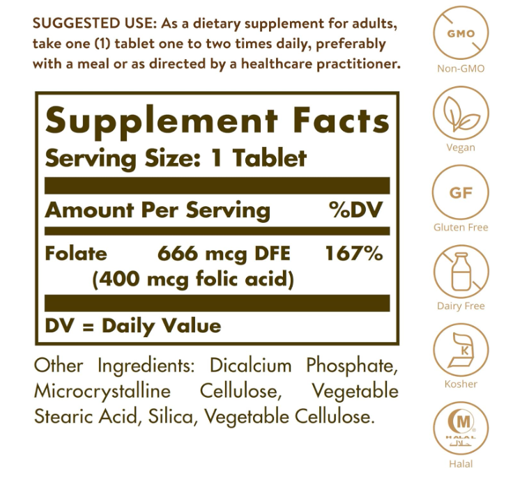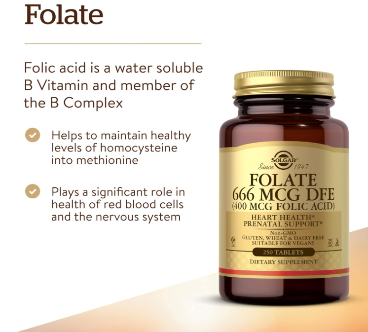 Solgar Folate 666 MCG DFE 250 Tablets 叶酸