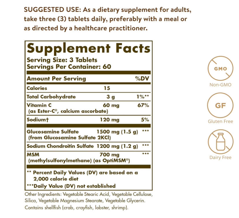 Solgar Glucosamine Chondroitin MSM with Ester-C 180 Tablets 氨基葡萄糖及軟骨素