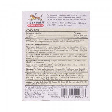 Tiger Balm Pain Relieving Ointment (Red Extra Strength) 虎标红色加强万金油 4g