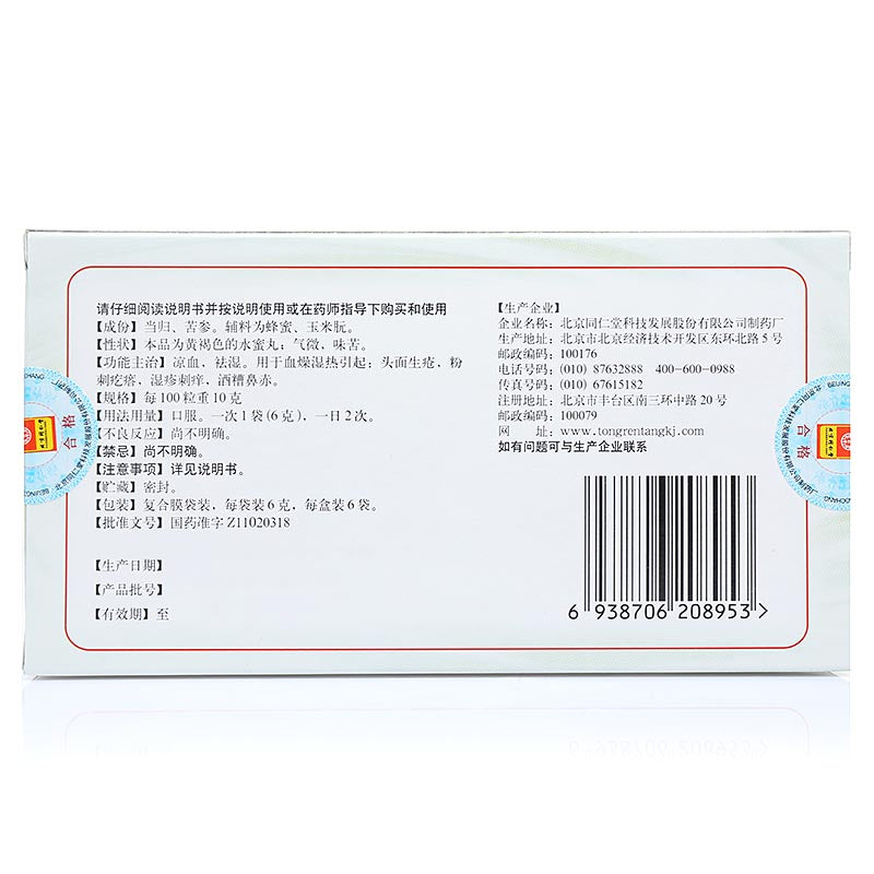 Tong Ren Tang Dan Gui Ku Shen Wan 同仁堂当归苦参丸 6bottles