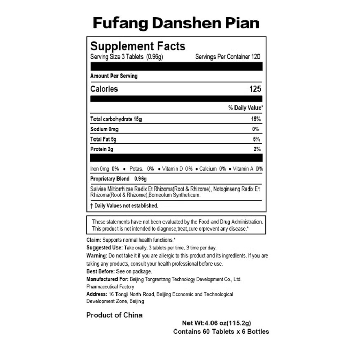Tong Ren Tang Fu Fang Dan Shen Pian 同仁堂复方丹参片 60Pieces/6 bottles