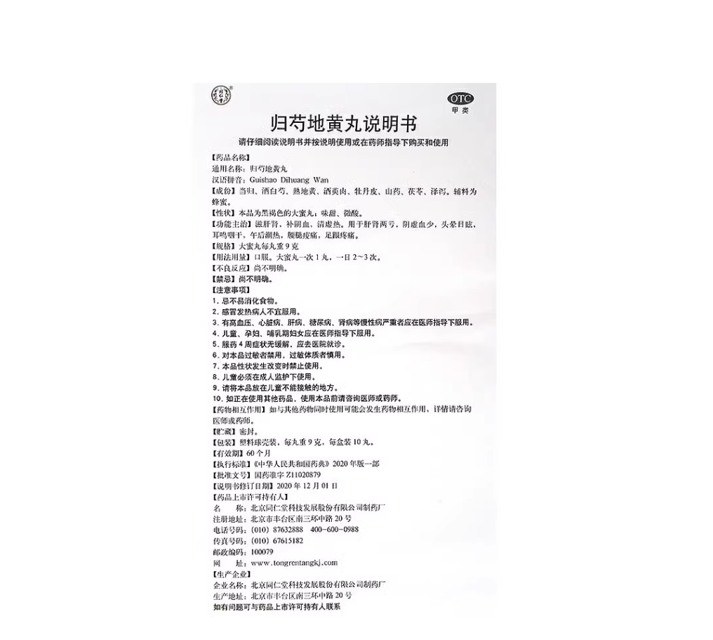 Tong Ren Tang Gui Shao Di Huang Wan 北京同仁堂归芍地黄丸 10Wan