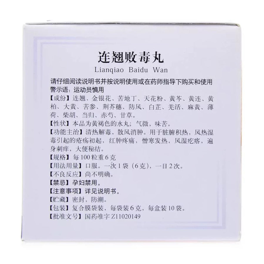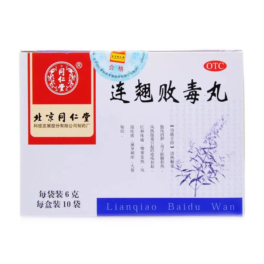 Tong Ren Tang Lian Qiao Bai Du Wan 同仁堂连翘败毒丸 6gx10 boxes