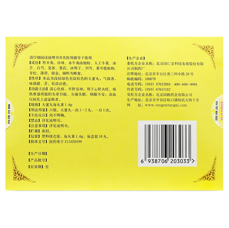 Tong Ren Tang Niu Huang Jiang Ya Wan 同仁堂牛黄降压丸 10balls