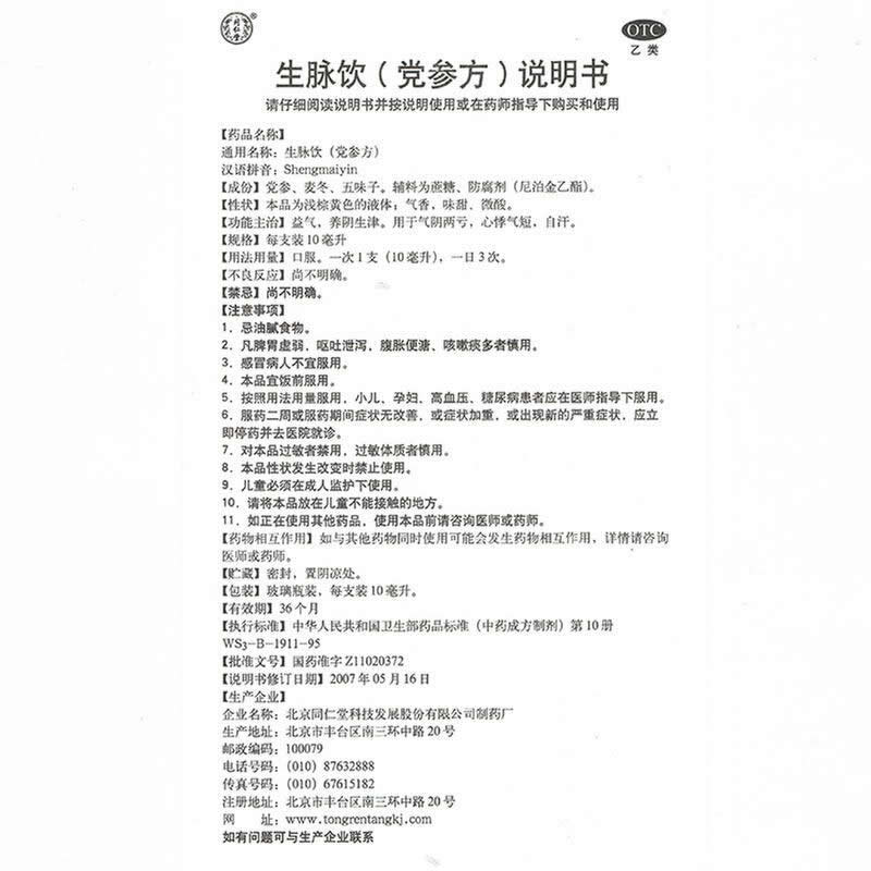 Tong Ren Tang Sheng Mai Yin 北京同仁堂生脉饮 10piece