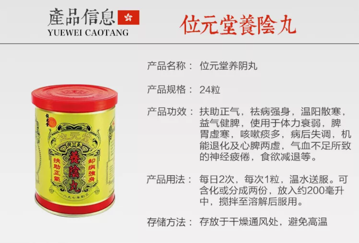 Wei Yuan Tang Yang Yin Wan 位元堂养阴丸 24Pills
