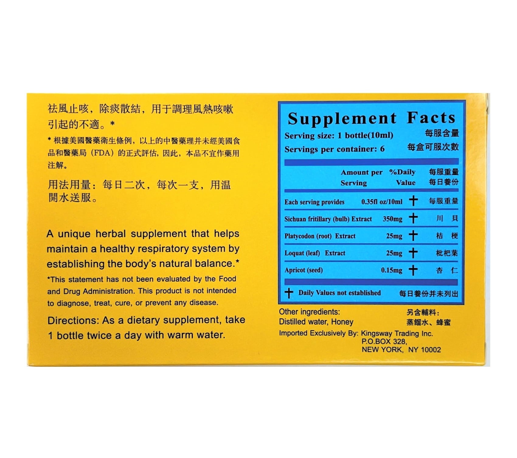Xing Lin Chuan Bei Ye 杏林川贝液(小儿专用) 6x10ml bottle