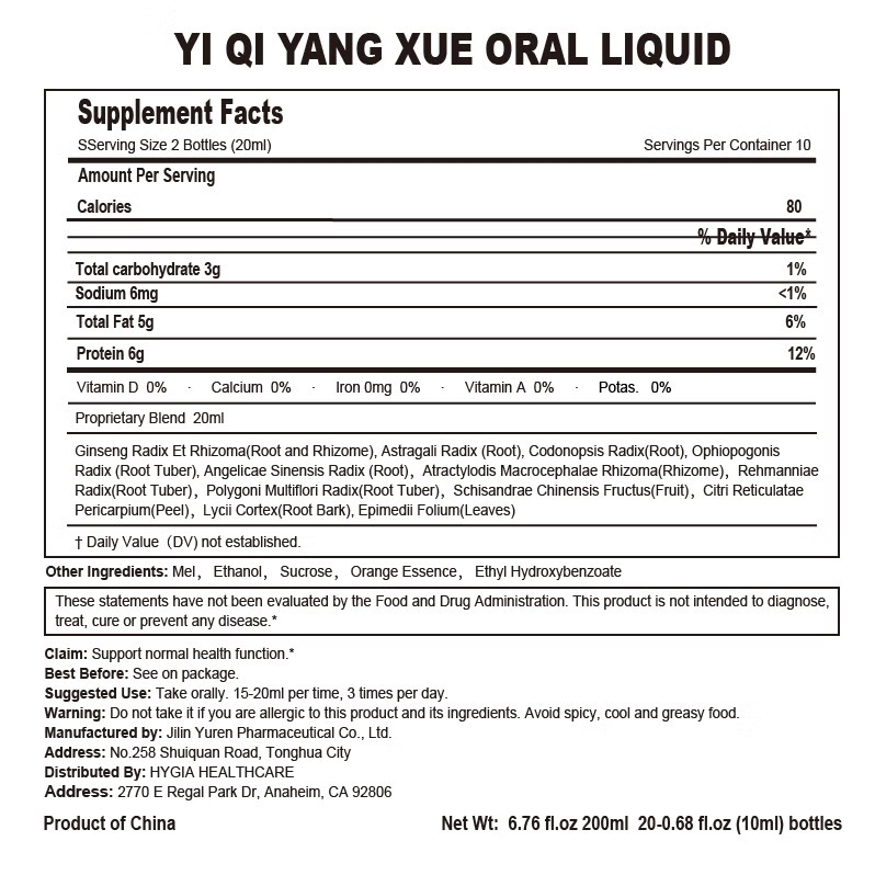 Yi Qi Yang Xue 华药堂 益气养血口服液 10Pieces
