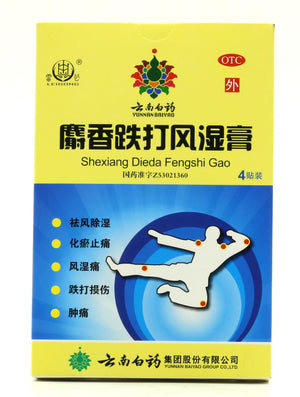 Yunnan Baiyao Shexiang Dieda Fengshi Gao 云南白药麝香跌打风湿膏 4Patches