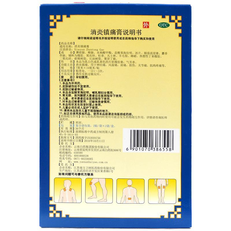 Yunnan Baiyao Xiao Yan Zhen Tong Gao 云南白药消炎镇痛膏 4Patches