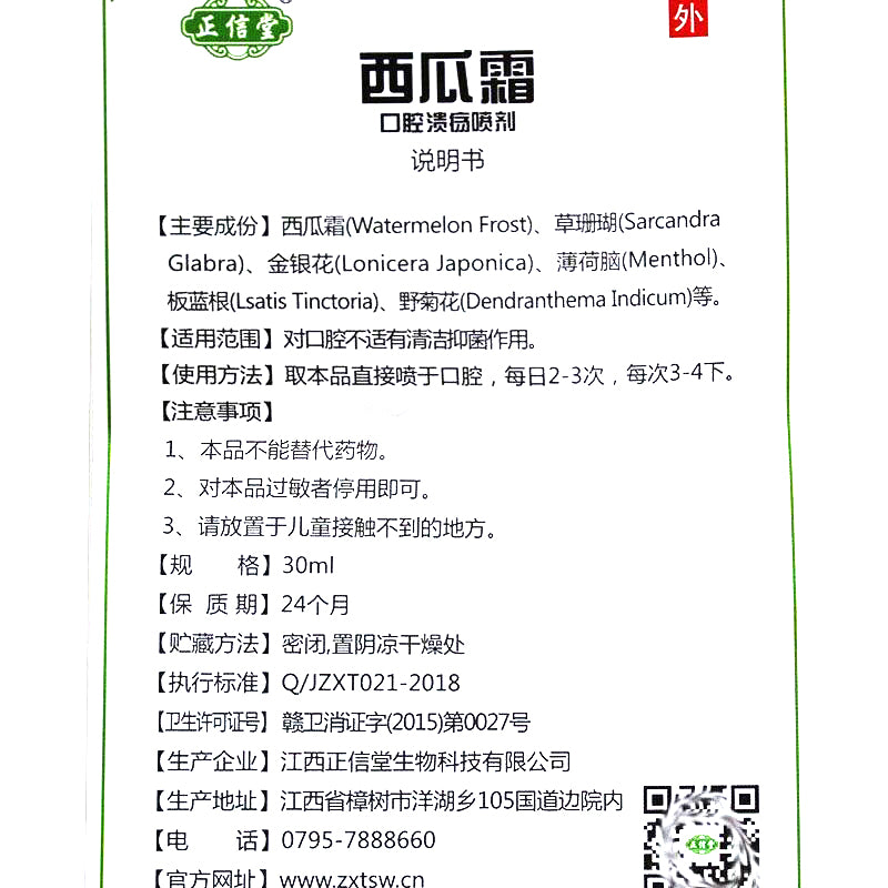 Zheng Xin Tang Xi Gua Shuang 正信堂西瓜霜(水剂) 30ml