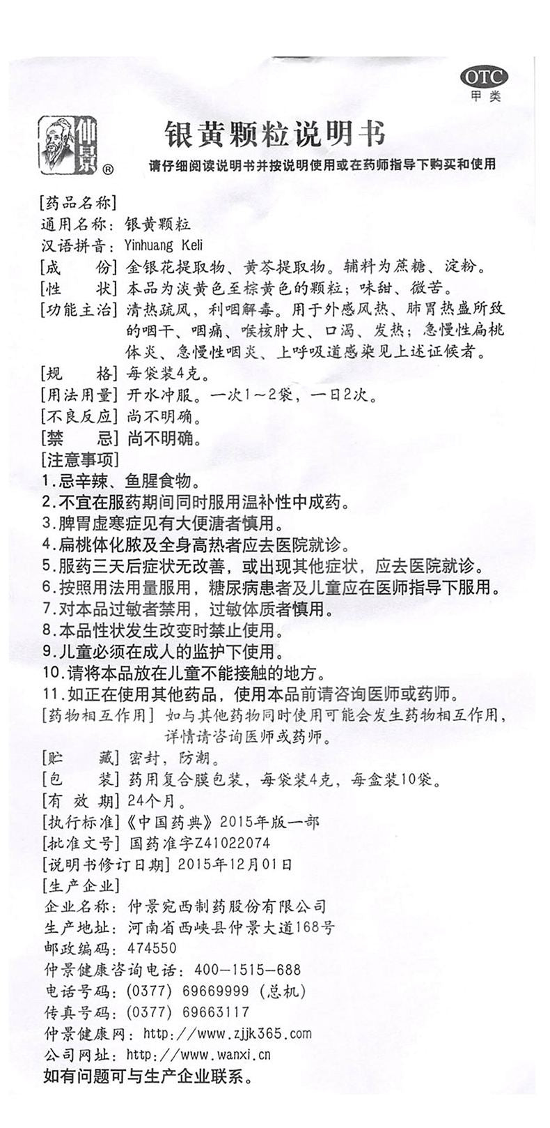 Zhong Jing Yin Huang Ke Li 仲景银黄颗粒 10Bags