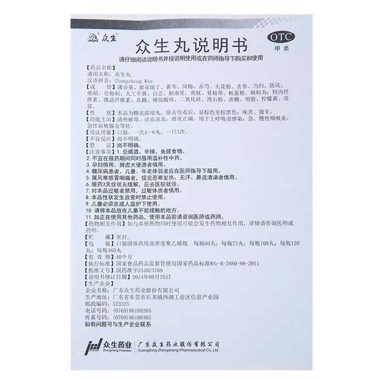 Zhong Sheng Zhong Sheng Wan 众生牌 众生丸 清热解毒 消炎止痛 72 pills